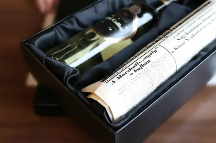 Az élményutalványt palackpostába tekerjük amit egy ajándék üveg borral* együtt elegáns arany "BOLDOG SZÜLETÉSNAPOT" feliratú dobozba helyezünk