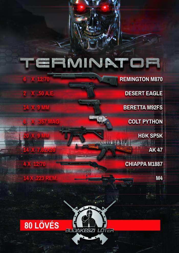 Az élménylövészeten az is részt vehet aki esetleg még nem ismerné John Connor és a Terminátor történetét, de szeretne magának egy felejthetetlen, puskaporos élményt. A mozifilm óta tudjuk Nincs végzet csak ha magad is bevégzed. A mi fordításunkban ez annyit tesz - Nincs lövészet csak ha magad is kézben tartasz egy sörétest.