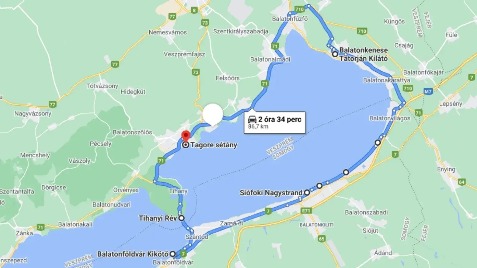 - 6 óra és 100 km-es robogás a Balaton körül Balatonfüredről indulva.