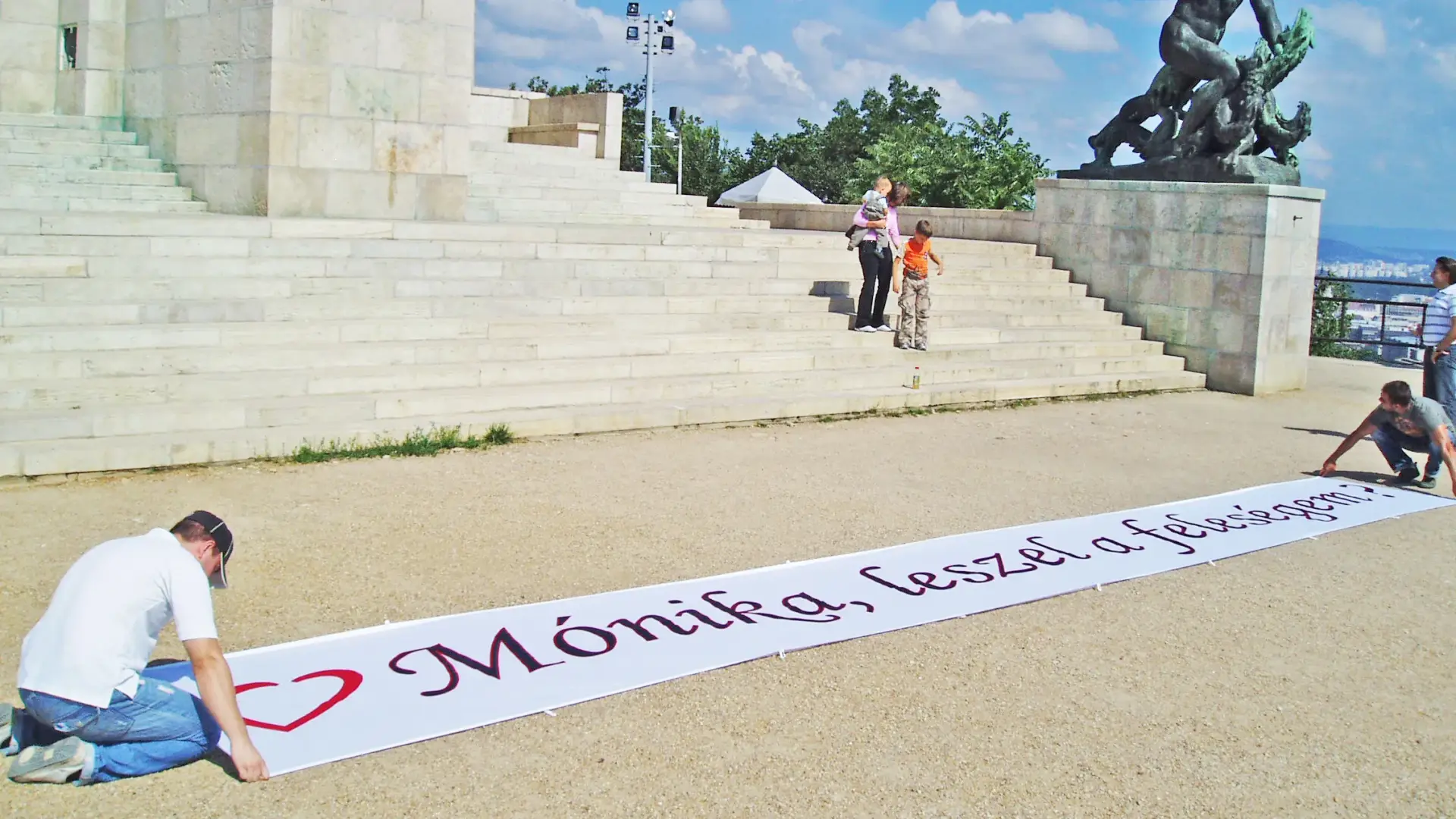 A leánykérés esetén már maga a repülés is elegendő lenne, hogy a fedélzeten megkérd kedvesed kezét. Annál viszont nincs is csodásabb, ha a panorámavadászat, városnézés közben hirtelen egy hatalmas ponyvát pillant meg szerelmed, rajta a nagy kérdéssel.