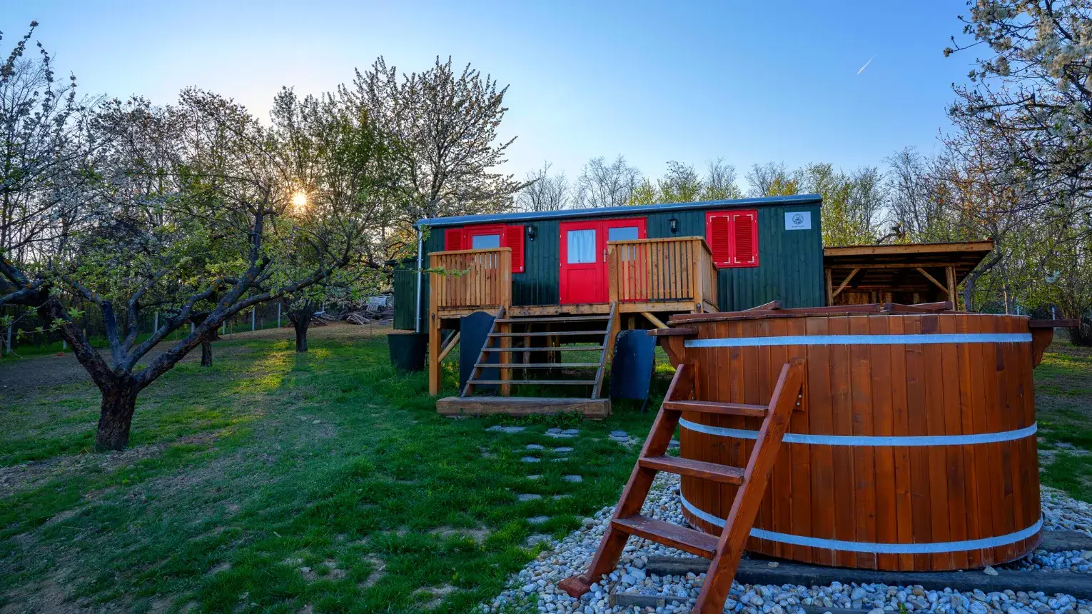 A Pannonhalmi borvidék festői kis falujának dombtetőjén, távol a város zajától, gyönyörű környezetben vár romantikus kuckónk, ahol a természet és a belső harmónia találkozik egymással. A teljes felújításon átesett cirkuszi kocsi megtalálta ideális helyét és már nem mozdul, megfelelő választás azok számára, akik szeretnek elvonulni, kirándulni, barangolni, még közelebb kerülni a természethez. A kis kuckó televízió és wifi nélkül is minden igényt kielégítően van felszerelve ahhoz, hogy a feltöltődés teljes legyen. Parajdi sóval töltött fürdődézsánkban pihentetheted fáradt végtagjaidat. Számos további kikapcsolódási lehetőséget tartogat a vidék, kezdve az 1000 éves apátsággal, borospincékkel, erdei gyalog és bicikli útvonalakkal, UAZ túrákkal, gasztronómiai ínyencségekkel várunk benneteket.