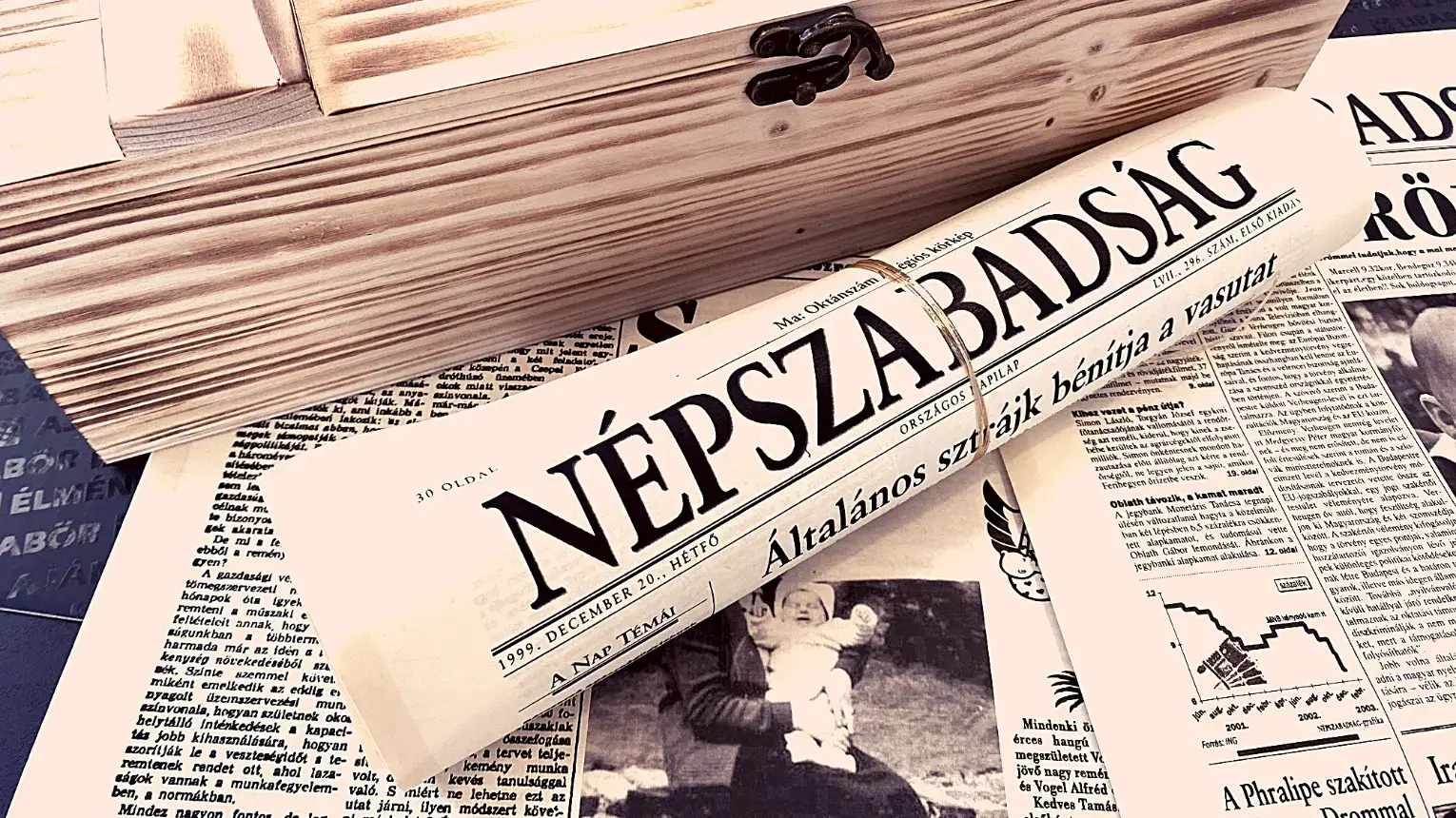 Szép fadobozban 12 oldalas születésnapi újság akár 1 munkanap alatt